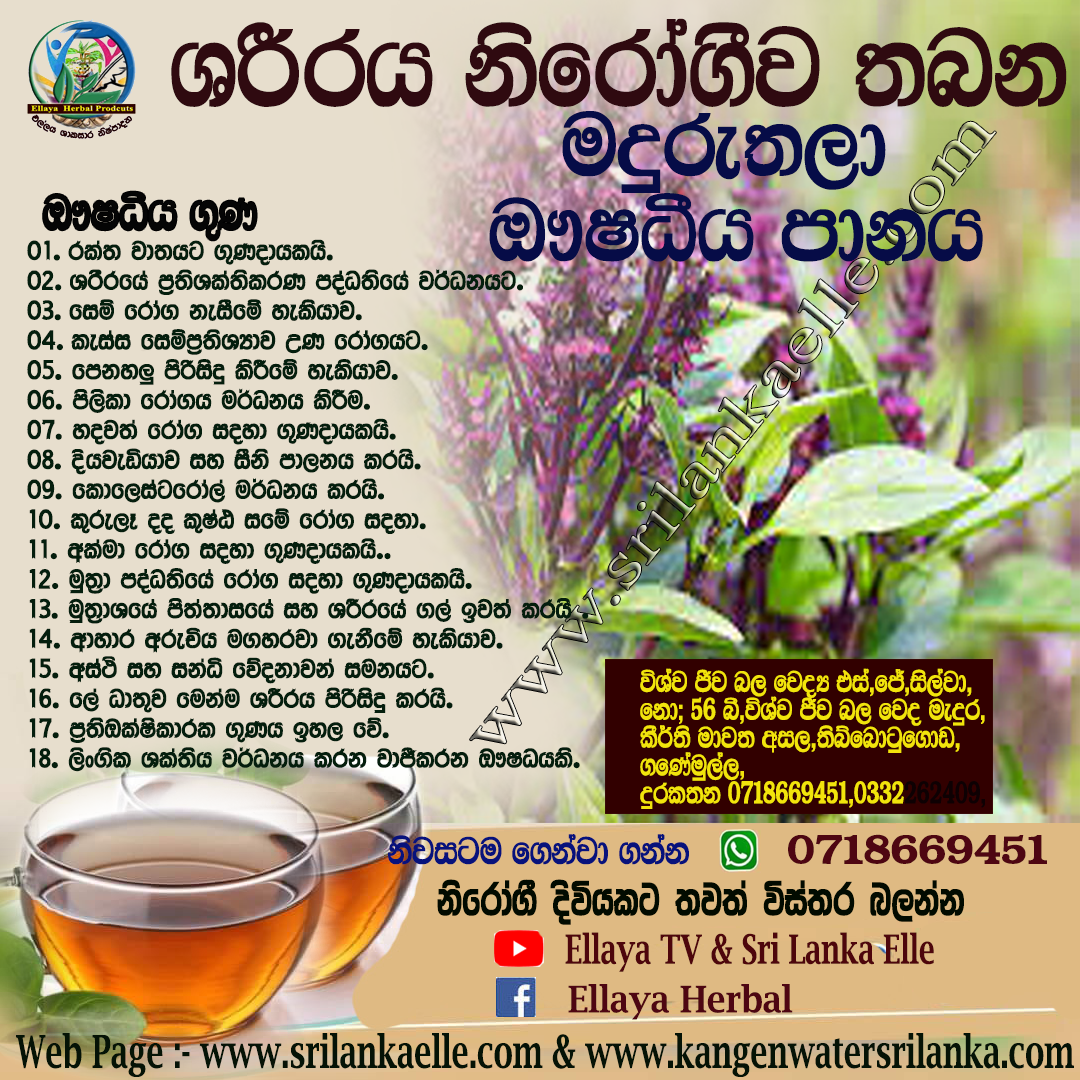 Man has lived with the natural environment for thousands of years. There, their food as well as medicine for sickness and sorrow was provided from the surrounding environment. In that practice, they identified suitable plants to cure diseases. Among them, Maduruthala මදුරුතලා can be called as an important and valuable medicinal plant that is still used today.